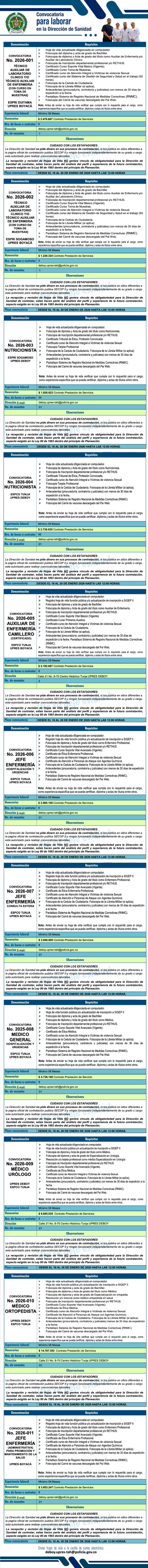 Convocatoria Unidad Regional Prestadora de Salud - Boyacá