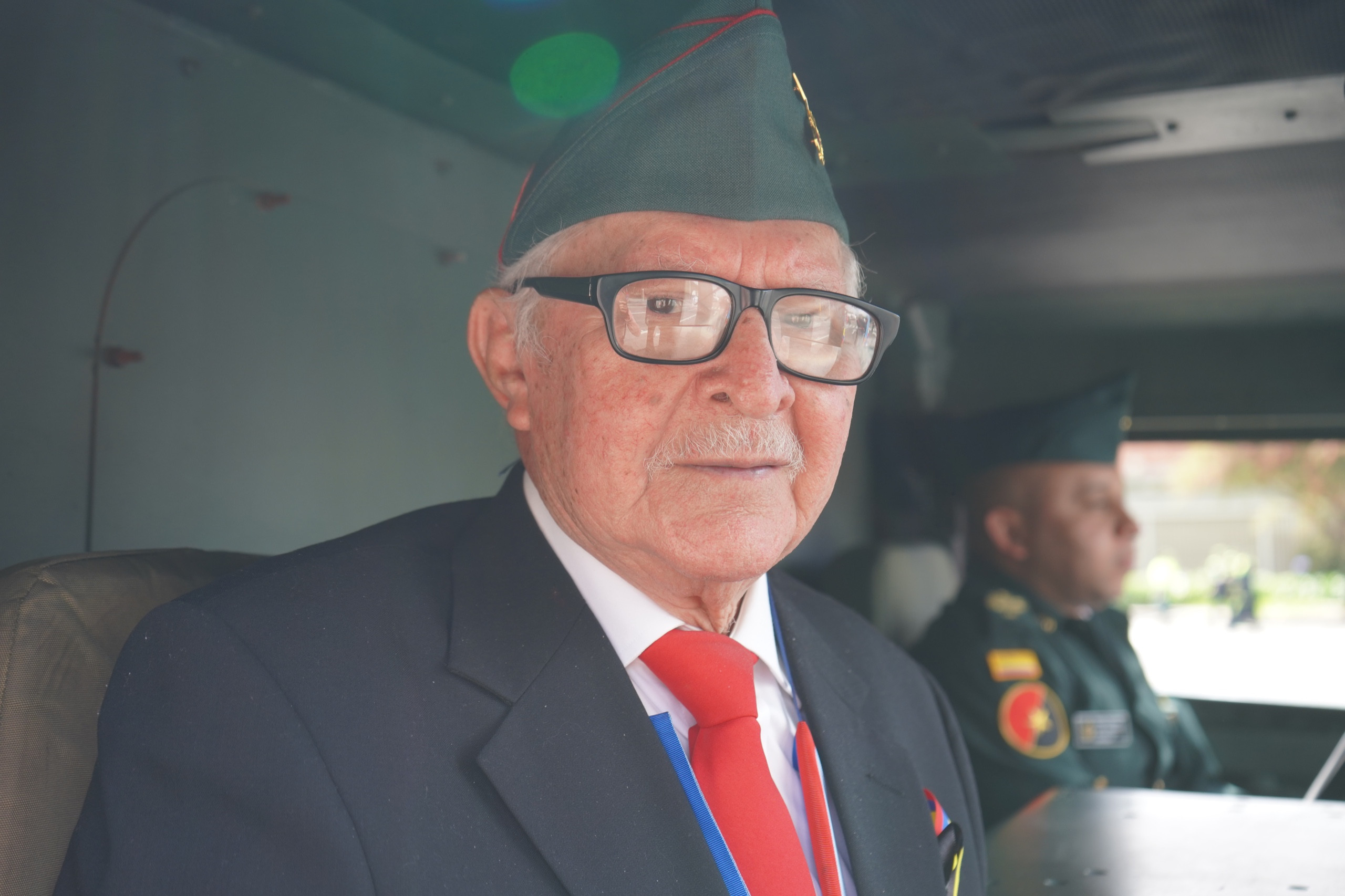 Veterano colombiano de la Guerra de Corea en el desfile ayer del 20 de julio en Bogotá.