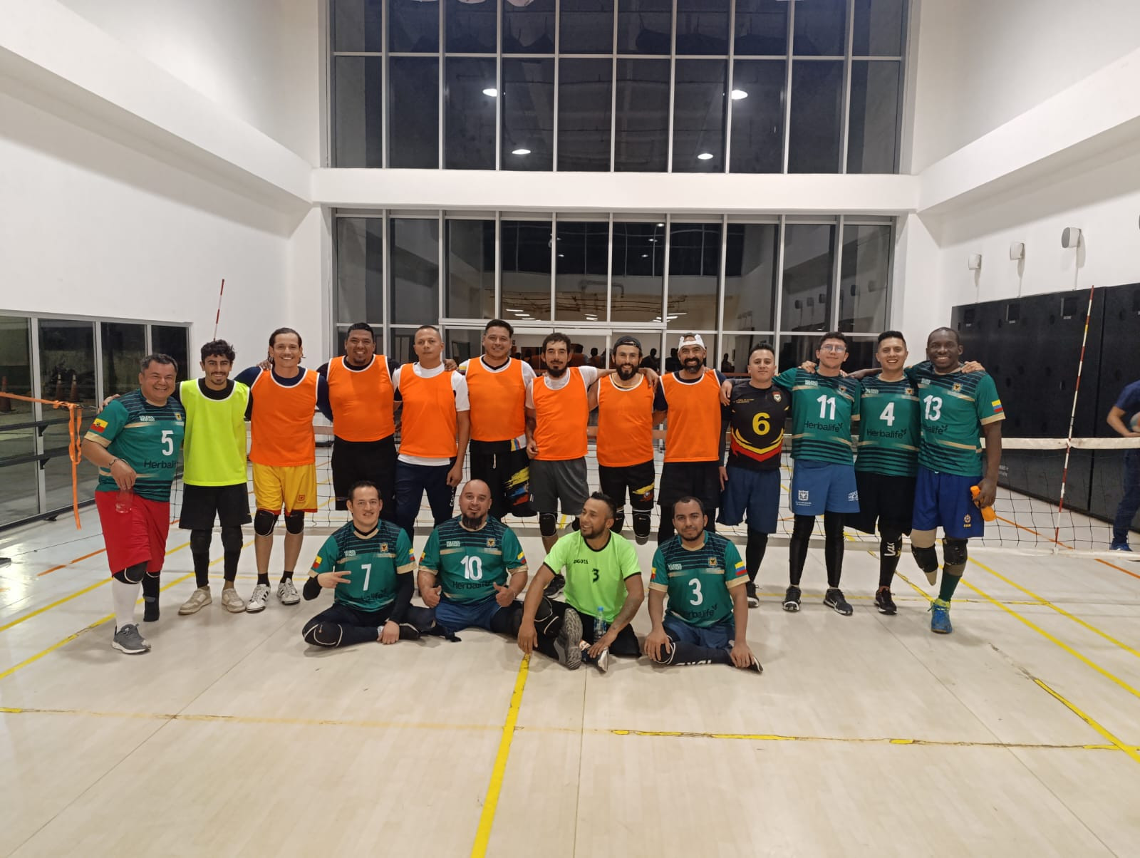 Manuel Vallarino y demás integrantes del Equipo Colombia, en la práctica de voleibol sentado en la DIVRI.