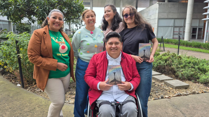 “Se llama iridiscencia porque son varios estilos de escritura y visiones de la realidad. Por ejemplo, tres ensayos hablan sobre caminar, y son tres versiones bastante distintas, según las experiencias de sus autores”, indicó Jhon Afanador, el veterano con discapacidad y uno de los autores de la obra literaria.