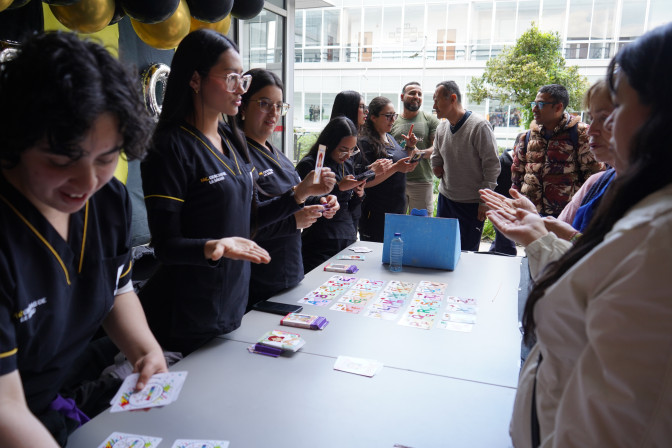Los asistentes recorrieron además cuatro stands interactivos dedicados a explorar distintas formas de lenguaje: desde escritura de nombres en coreano, enseñanza de señas básicas en Lengua de Señas Colombiana a cargo de la Corporación Universitaria Iberoamericana, hasta una muestra práctica de braille liderada por el usuario César Orozco, acercando a los participantes a nuevas maneras de comunicarse.